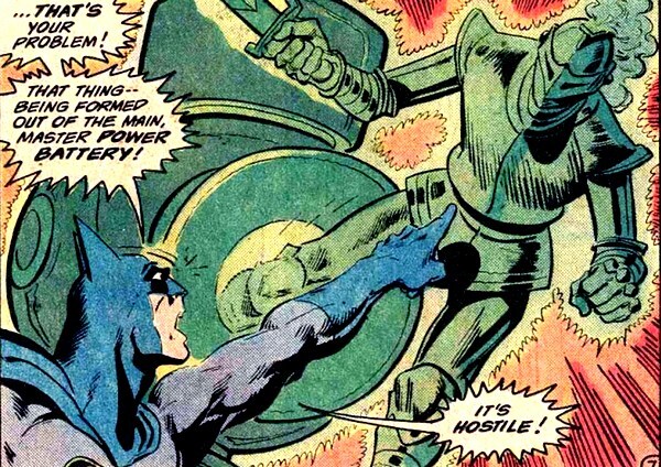 Толпа уже собирается, похищает мэра, и, разбежавшись, сталкивает его со скалы, но Тёмный Рыцарь мэра спасает, и в воспитательных целях немного накидывает по голове особо буйным горожанам. Но каменный великан, подкравшись исподтишка, похищает Робина! Но...есть ли великан? Бэтмэн и мэр общими усилиями обнаруживают потайной ход в подземное логово бандитов! Те засели в шахте, которая так-то считалась заброшенной. Каменный великан с ними...только что-то он сильно каменным не кажется. Бэтмэн накидывает бандитам, освобождает Робина и накидывает каменному великану. И это не так уж и сложно (великан в иллюстрации таким большим изображён просто для внушительности, а так-то он ну просто по-человечески большой амбал). Но шахта начинает осыпаться! Бэтмэн и Робин спешно выбегают, а вот великана заваливает насмерть. Долбанутый Мак, тоже бывший в шахте, почти успел. На него нападало мусора, и он умирает, но перед смертью сознаётся, что всё подстроил. Великаном был цирковой силач, и с его помощью Мак хотел устранить мэра и взять под контроль город в целом и ценную шахту в частности. Но не получилось, не фартануло.