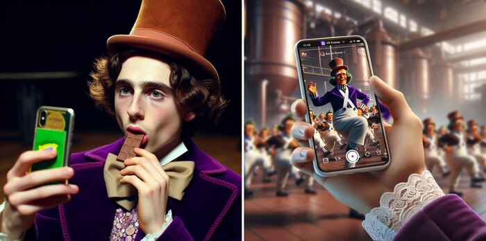 С помощью DALLE-3 и Midjourney решил представить, как бы герои популярных фильмов и сериалов могли развлекаться, если бы у них была возможность снимать короткие вертикальные ролики через VK Клипы.