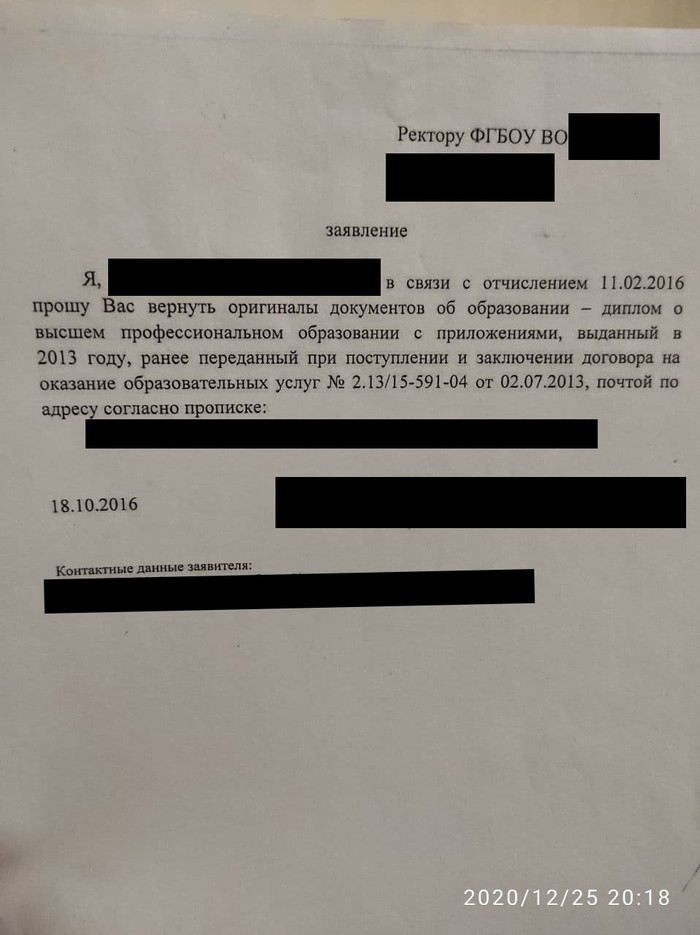 - идти в прокуратуру и Рособрнадзор, если не вернули на этапе обращения на имя ректора.