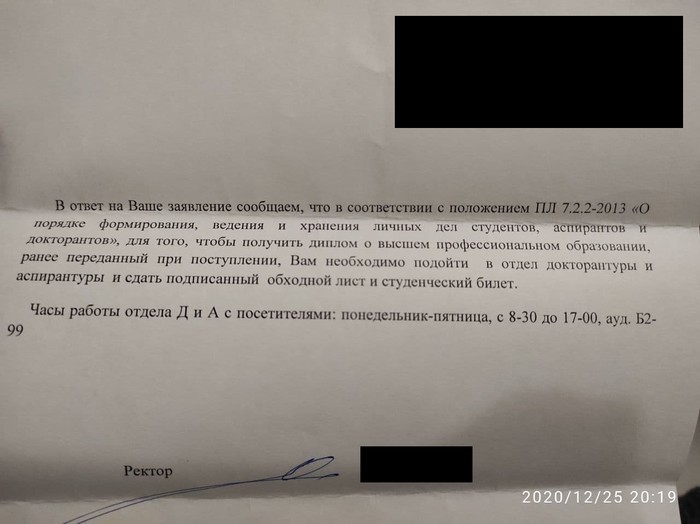 - дождаться ответа универа (в течение 30 дней как обращение гражданина наверное);
