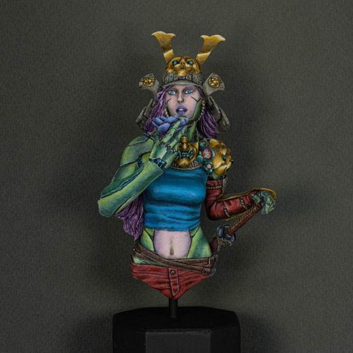 Вот еще один. Смоляно-металлический бюст масштаба 1/10. Роспись акрилом и маслом.