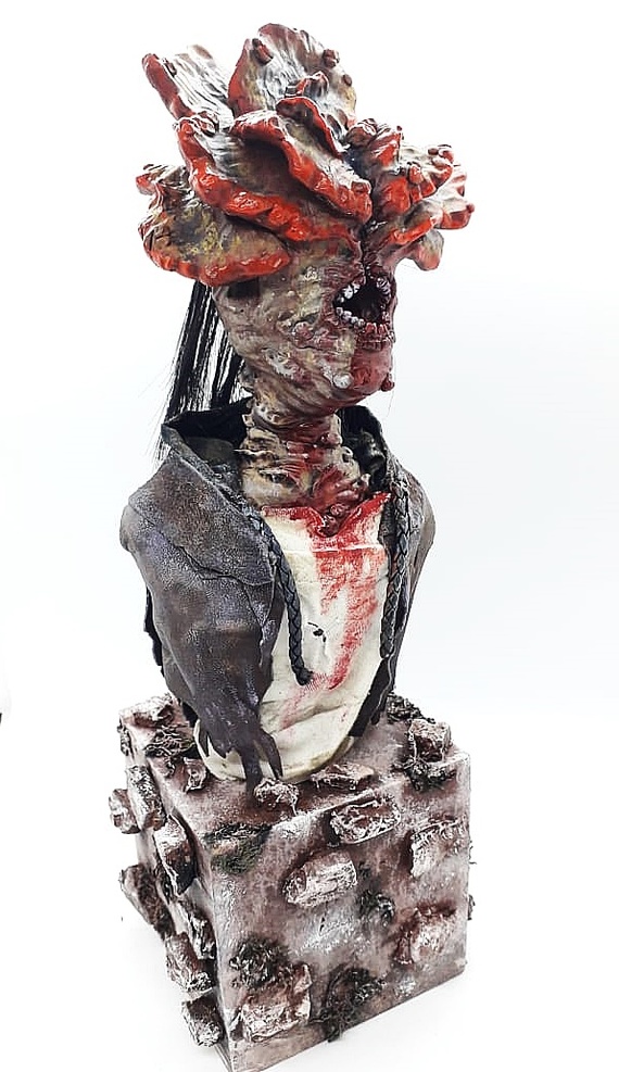 бюст щелкуна из игры "The last of us", высота с подставкой 30см, материалы полимерная глина, натуральная кожа, ткань, дерево, искусственные волосы. Делал бюст первый раз, расписывать нормально, я так и не научился, но вживую как всегда выглядит лучше. Сам не являюсь фанатом, но как говорит мой хороший товарищ Максим: "Какое время- такие и герои" . Спасибо Вовану из Кемерово за заказ!