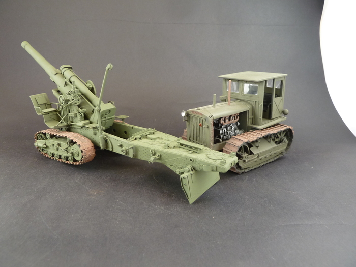 Одна из версий имела гусеничный ход, допускавший стрельбу непосредственно с грунта без специальных платформ. Всего с 1932 по 1942 год было изготовлено 1011 гаубиц Б-4.