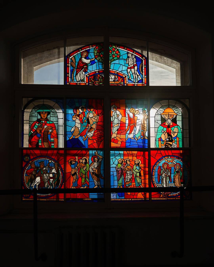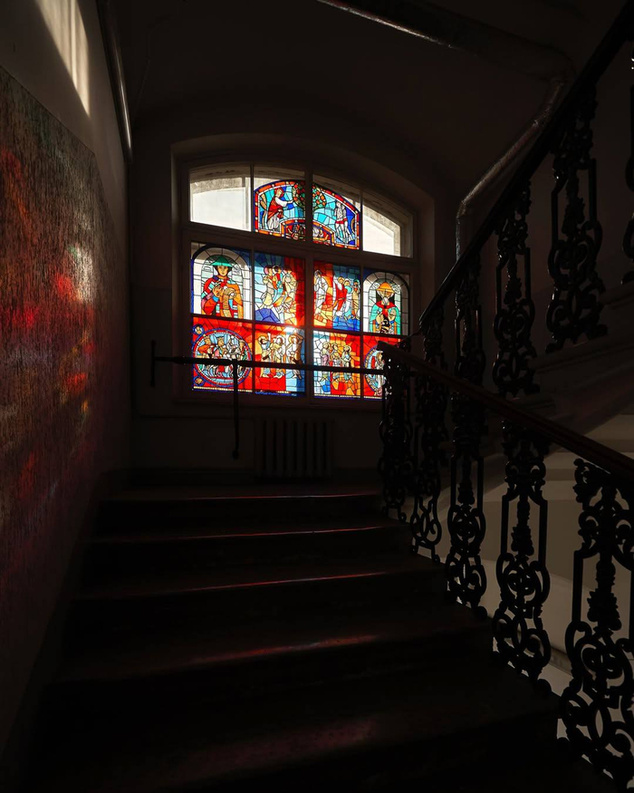 Витражам в доме Глазера очень повезло. В 2024 году в доме провели капитальный ремонт, а исторические окна отправили на реставрацию. Подрядчик очень добросовестно отнесся к поставленной задаче.