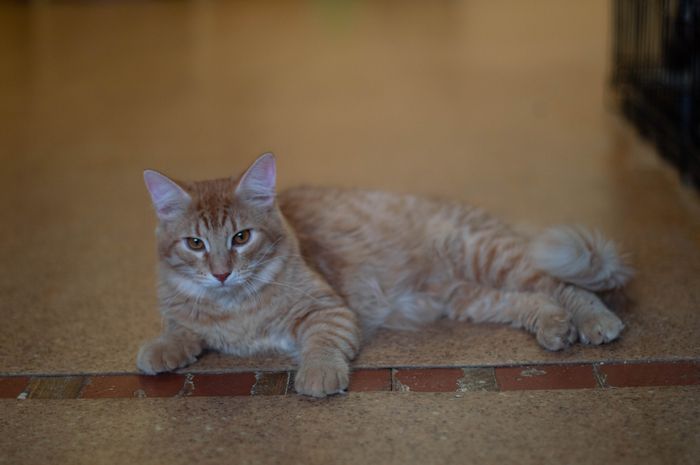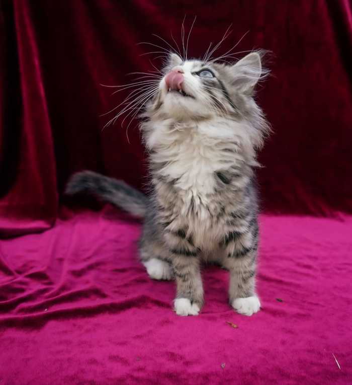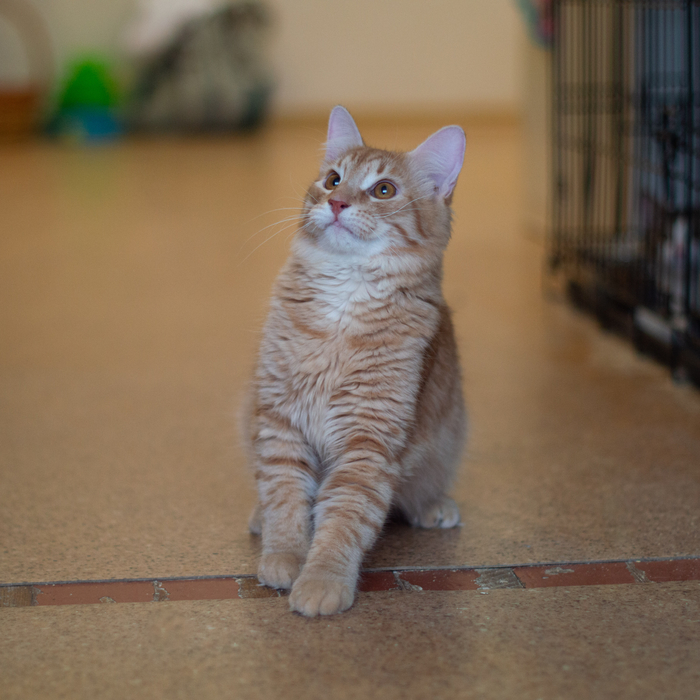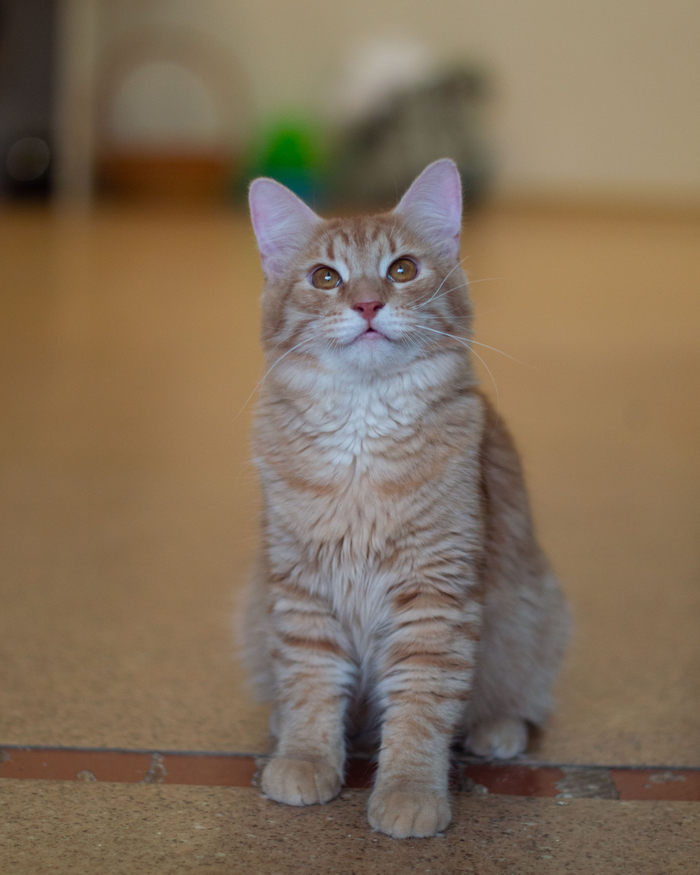Всех забрала, а его по какой-то причине нет. Так что мама у него была двуногая, с соской каждые три часа и смесью для котят. Так и выкормили в боооольшого Котика.