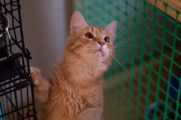 Котик сейчас большую часть времени проводит в гордом одиночестве (хорошо что есть авто-кормушки и авто-опилки). Но разве это жизнь для такого ласкуши?..
