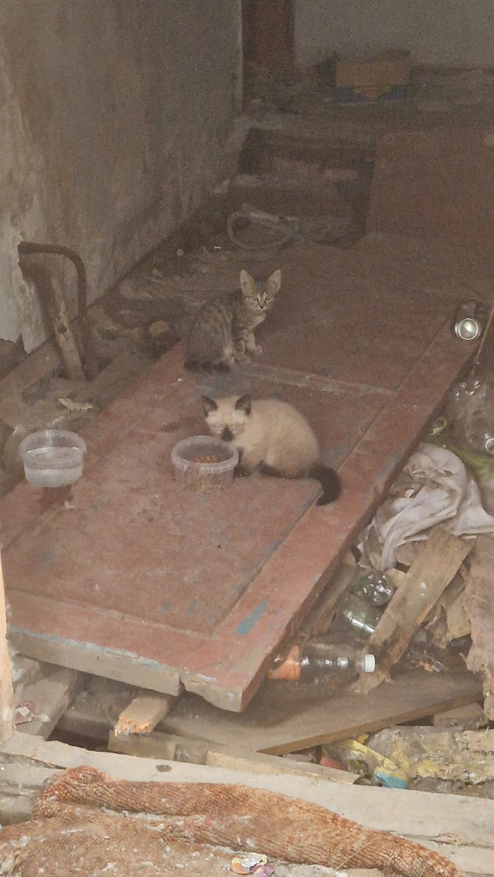 Подбросили котят в соседний заброшенный дом, буквально сегодня, потому что раньше их не видела. Котята очень красивые, но пугливые, в руки не идут, поэтому качественные фото не получились. Себе взять, к сожалению не могу, даже на передержку. У меня двое - одна из них больная. Город Томск. Район Елизаровых, недалеко от Ленты. Поднимите, пожалуйста. Без рейтинга.