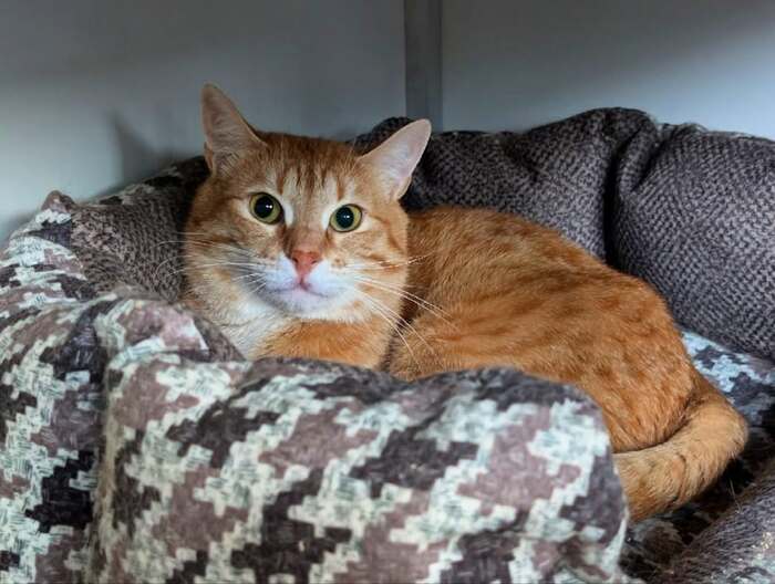 Имбирю где-то около годика. Он обработан, кастрирован. На передержке ходит в лоток.