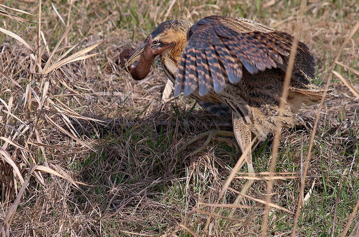 А вот тут уже не повезло ласке, и она стала жертвой большой выпи.