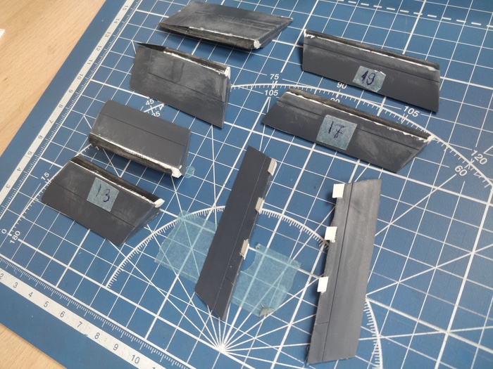 Для того чтобы сделать механизацию в состоянии "покоя", отклоненными вниз, напечатал сегменты для каждого элемента: