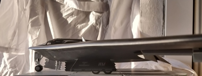 Косяков хватает, знаю 🙈 но честно сказать устал, очень уж объемная и большая работа. Мало того что очень много времени уходило на шлифовку слоев краски и лака, так еще большие габариты очень сильно замедляли работу над художественной частью, одно неосторожное движение, и бац, что то задел и надломил. Уже под самый конец пережил аварию одной стойки шасси, скрипя зубами с горем пополам восстановил. Тяжеловата модель для таких стоек, работать нужно только на стапеле.