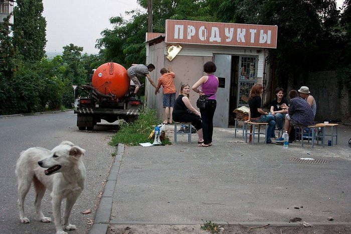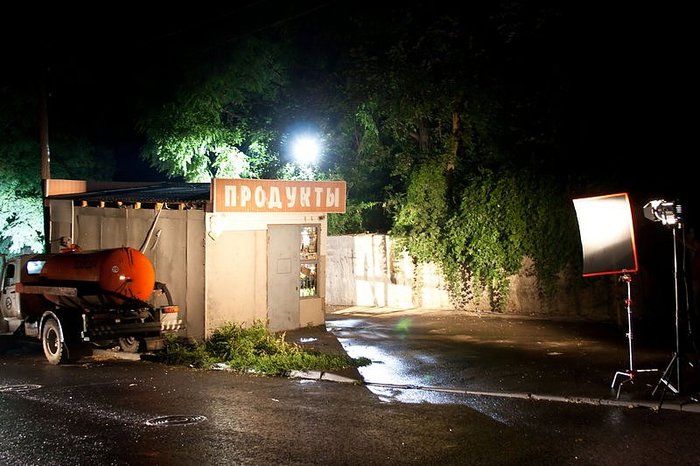 Так отчего же эта машина так запала мне в душу? Дело в том, что она, собственно, и «делала» кадр. Без нее это был бы просто скучный и ничем не отличающийся от тысяч своих собратьев ларек. Но стоящий в метре от окошка, в котором люди покупают хлеб, говновоз сразу создавал внутрикадровый конфликт. Да, я прекрасно понимаю, что 99% людей никогда не обратят внимание какая там машина в эпизоде, который длится несколько секунд. Но даже у них на невербальном уровне от такого соседства возникает ощущение провинциальности происходящего. А именно этого я и добивался.