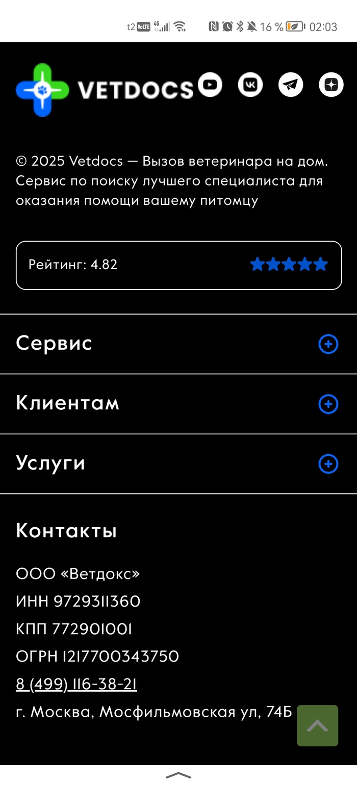Пока искала возможность связаться с кем-то из вышестоящих, наткнулась уже на другой их сайт, где прописано, что они не несут ответственность за качество проведённых услуг, хотя в предыдущем, который и искать не нужно, пишут о том, насколько ответственно они подходят к здоровью животных, насколько им это важно, какие у них квалифицированные специалисты со стажем работы в среднем 10 лет.