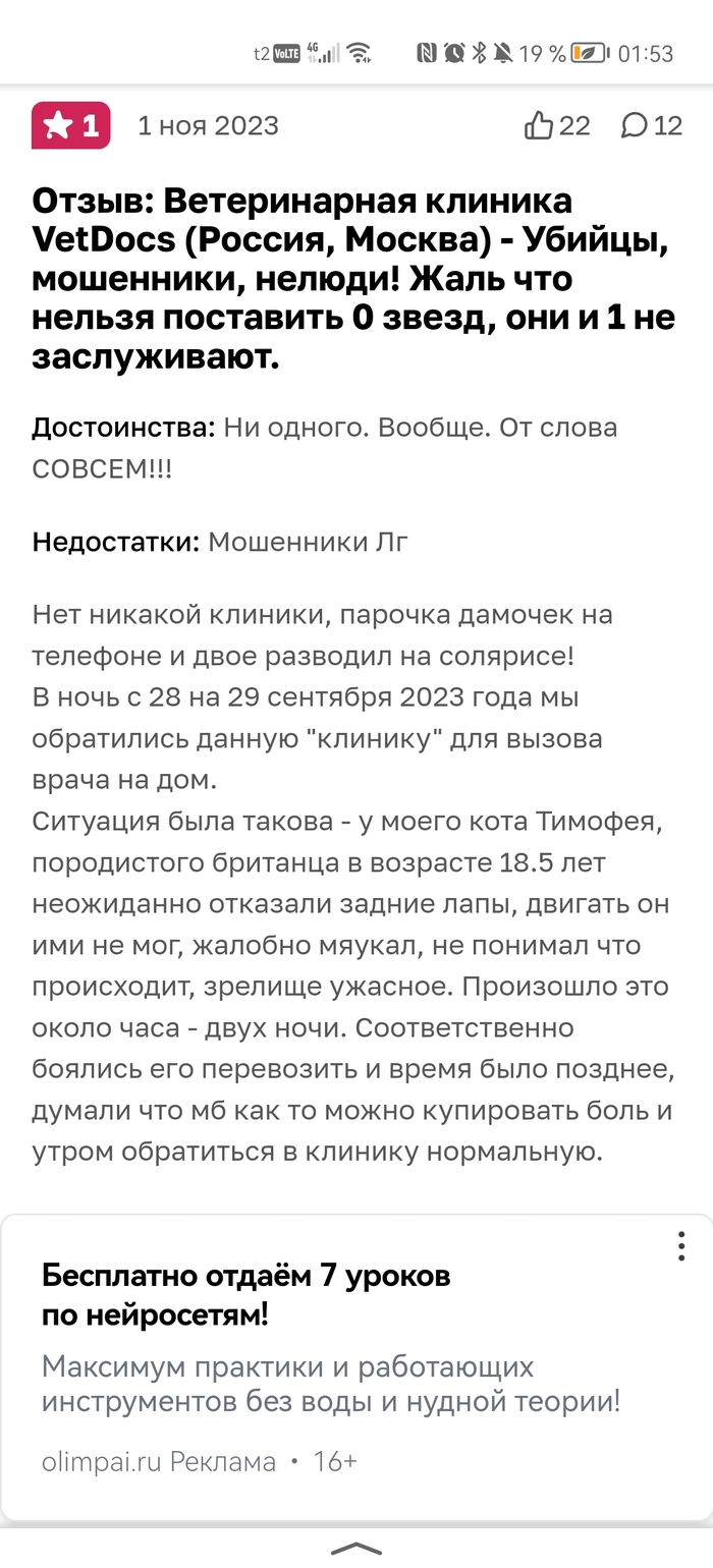 Прошу всех неравнодушных максимально распространить эту информацию, чтобы люди не попадались в эту ловушку и как следствие не страдали их животные. Туда обращаются за помощью со многими животными и в основном это кошки и собаки.