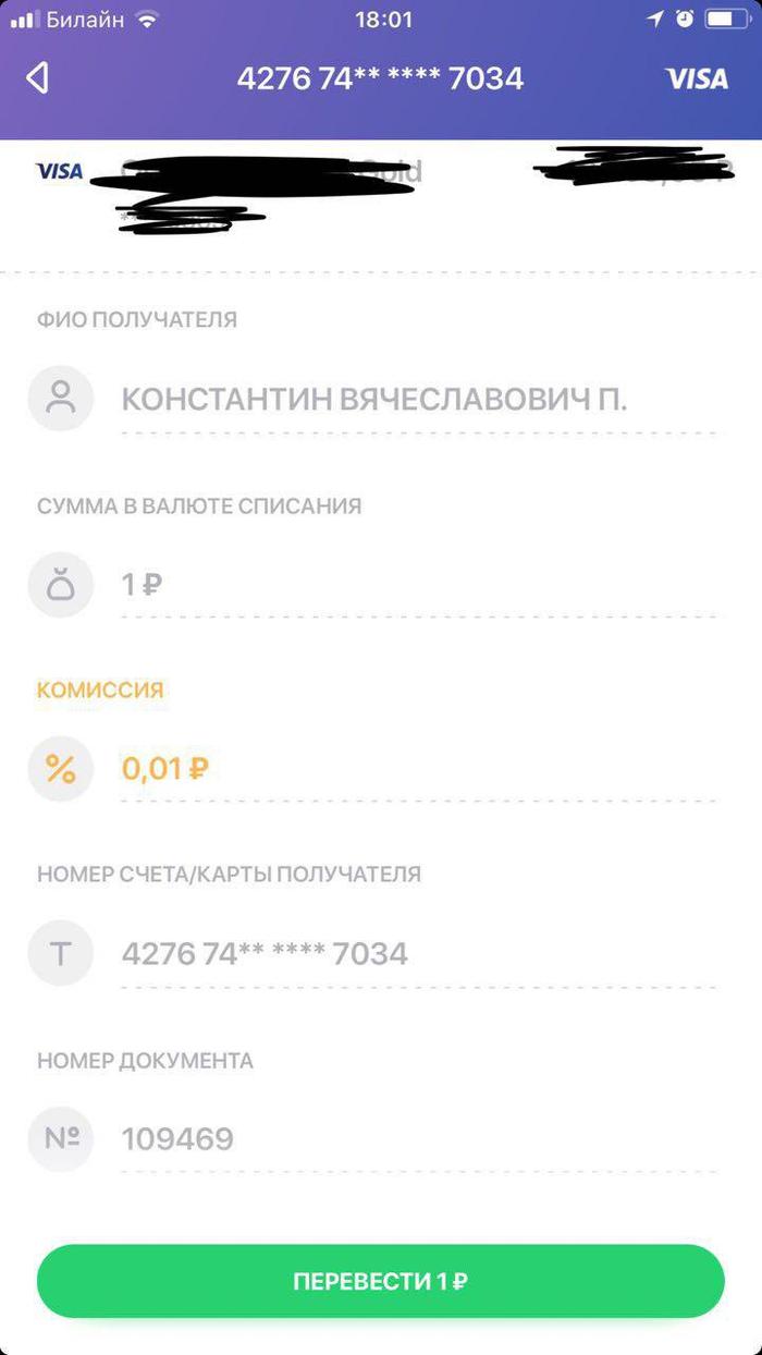 Суть в том, что ФИО получателя удивительным образом ОЧЕНЬ сильно совпадает с ФИО моего друга. Если не знать отчество, то можно поверить, что это его карта.