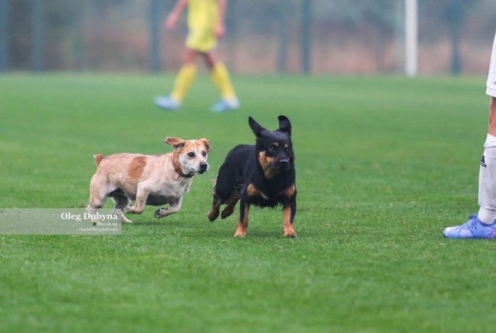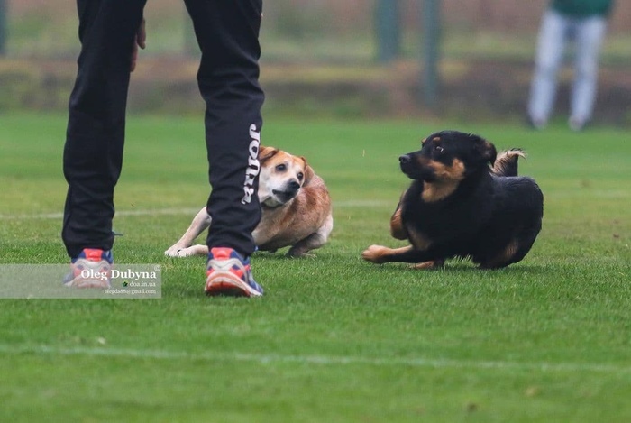 В первом тайме на поле выбежали две игривых собаки. Им дали погулять, после чего они сами ушли с игровой поляны.