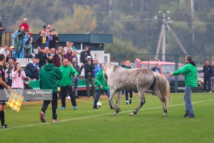 Ну а во втором тайме футболистам решил помочь конь. Такого pitch invasion вы еще точно не видели!