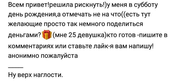 Добрый день, подписчики и просто читающие:)) Обещала вернуться, как появится вдохновение, как ни странно, появилось быстро)) Сегодняшний пост посвящён "прошуньям". От некоторых скринов прям пригорает (конкретно у меня)))