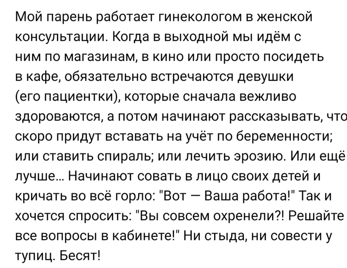 — Это вы тут гастроэнтеролог? Меня ваш колл-центр на неудобное время записал! Я завтра не могу, я что должен отгул брать? Примите сегодня! Что значит нет? Вам что жалко, я с очередью договорюсь?