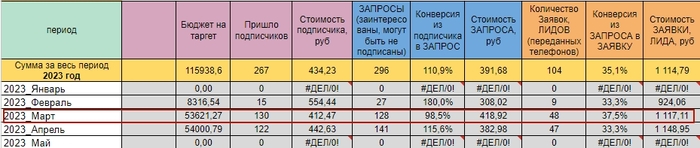 с 1 по по 31 марта получили 48 заявок стоимостью 1 117.11₽