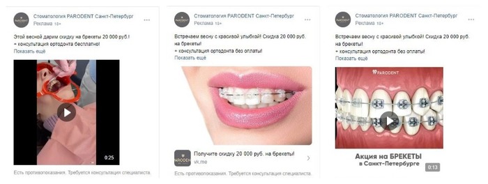 Согласно нашей стратегии, было решено продвигать акции на брекеты и имплантацию зубов. Также чуть позже запланировали протестировать акцию на пародонтологию.