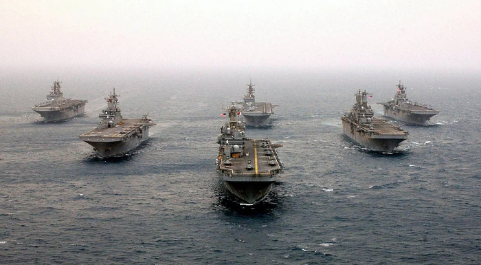На этом фото - шесть батальонов морской пехоты. УДК классов "Тарава" и "Уосп" (фото U.S. Navy Mate 2nd Class Larry S. Carlson):