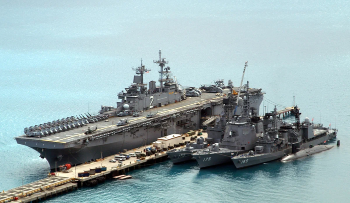 Сравните размеры: LHD-2 Essex и японские эсминцы (фото ВМС США)