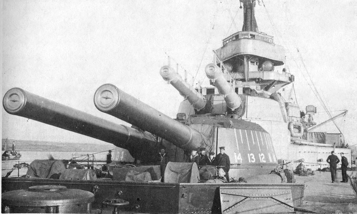 Башенные установки орудий Мark V на дредноуте HMS Ajax