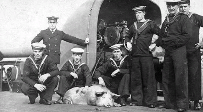 Спасённый поросёнок «Тирпиц» на борту HMS Glasgow