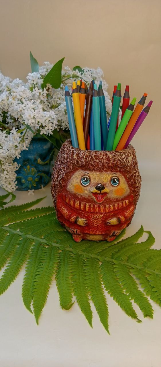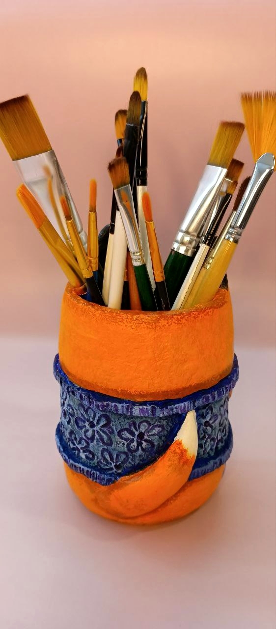 Можно использовать как подставку под кисти и карандаши, сухоцветы или ватные палочки.