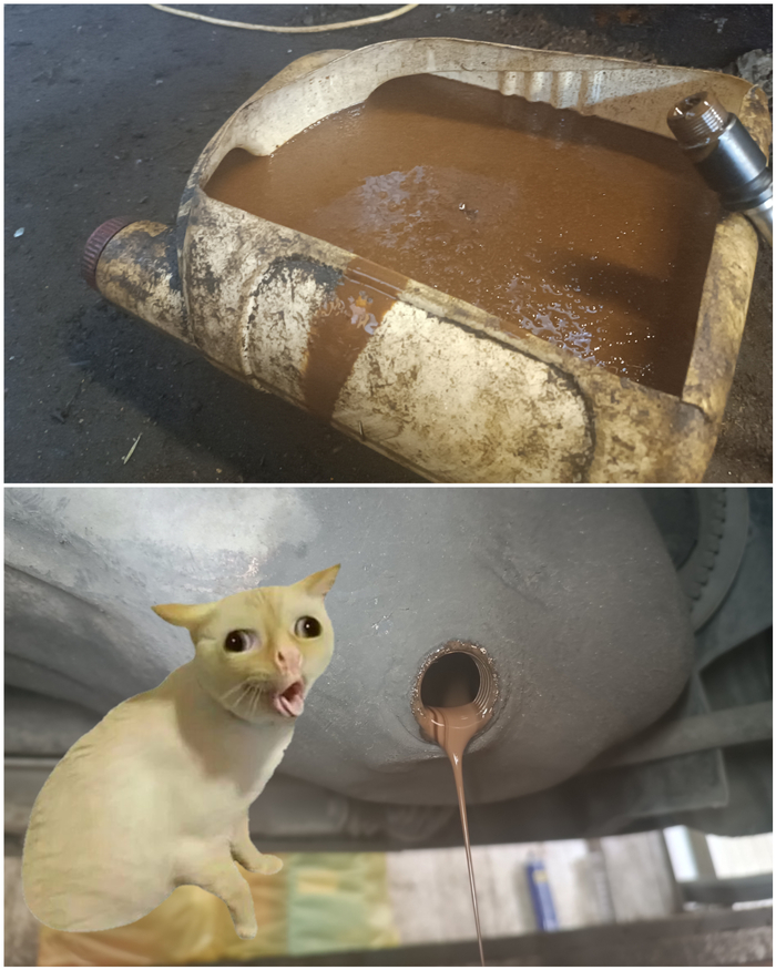 Сольём этот коктейль из двигателя. Литров восемь наверное, вместо положенных трёх.