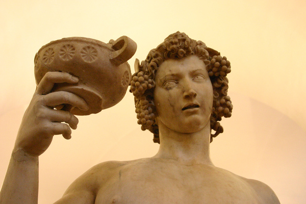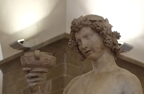 Эта двухметровая скульптурная группа предназначена для кругового обзора. Микеланджело изобразил пьяного бога вина, которого сопровождает сатир. Кажется, что Вакх готов упасть вперед, он шатается, но сохраняет равновесие, отклоняясь назад. Взгляд бога обращен на чашу с вином, и он кажется слишком влюбленным в свой собственный дар человечеству.
