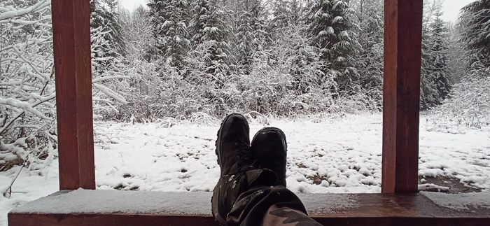 Последний час мы шли в кромешной темноте, подсвечивая путь фонариками. Снег шел весь день и тропинка местами превратилась просто в хлюпающую жижу в которой ноги либо тонули, либо разъезжались в разные стороны.