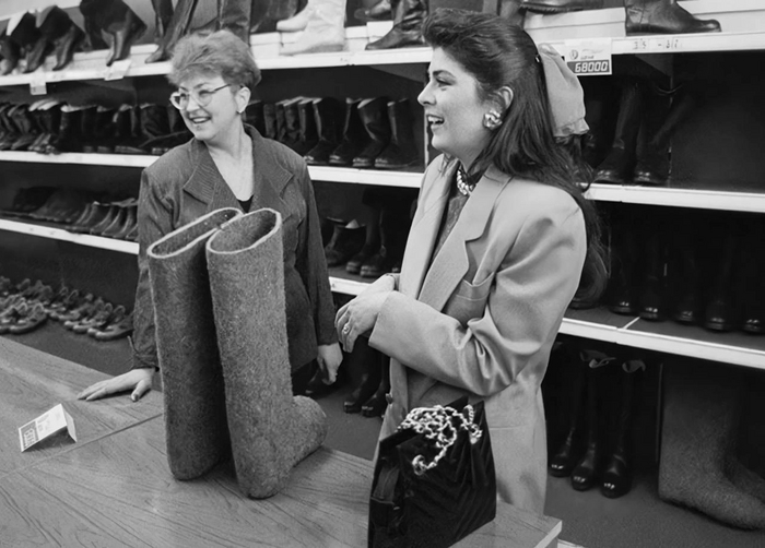 Актриса Виктория Руффо (Просто Мария) во время посещения обувного магазина в Перми, 1994 год.