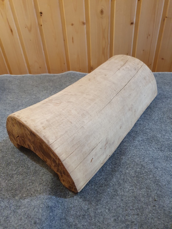 Лично я использую спил дерева необходимого размера и формы. Рекомендую сделать такой же, расколов пенек на 2 части и обтесав кору. Понятно, что все шероховатости нужно убрать, чтоб не раниться занозами. Для облегчения конструкции можно выбрать сердцевину. В бане такой инструмент парения смотрится эффектно.
