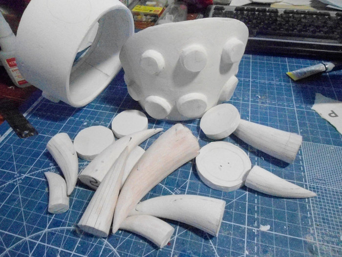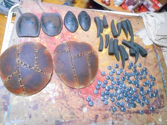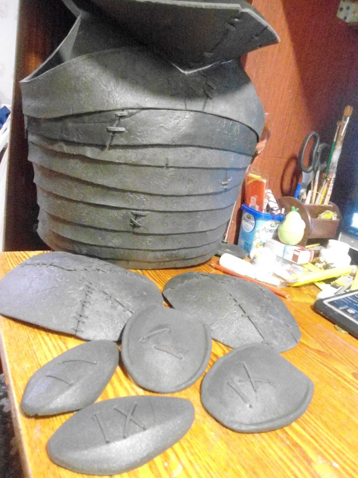 Основные материалы, из которых изготавливали костюмы (преимущественно жена всё делала, я только помогал чуть-чуть): ПВХ, EVA, фанера, пенополистирол, черенок от лопаты, искусственная кожа, искусственный мех, искусственная замша, папье-маше.