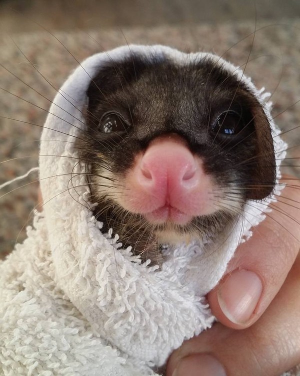 Хоан, сбившая ночью опоссума, остановилась и нашла детеныша рядом с трупом, малыш выпал из сумки, и отвезла в ближайшую ферму для животных.