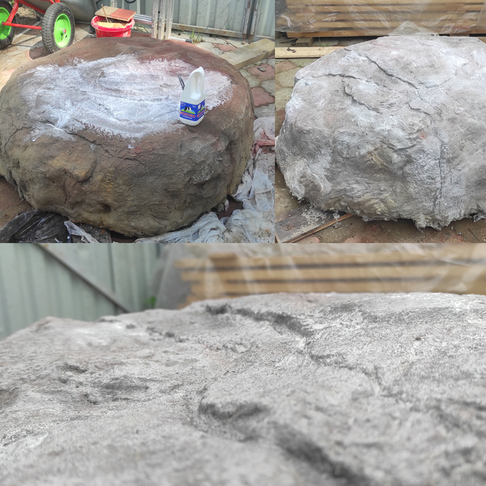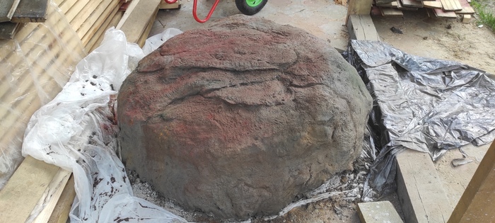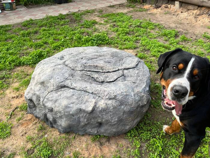 Есть у меня ну участке крышка ЛОС. Прямо посреди газона. И очень она портит вид. Участок маленький, другого места для нее не нашлось. В общем решили мы с супругой что "ХВАТИТ ЭТО ТЕРПЕТЬ!" и надо как-то скрыть это дело от глаз. Думали долго, всякие варианты перебрали, и клумбы, и лавочки, и прочее зодчество. По итогу решили остановиться на фальшивом камне. В продаже такие валуны начинаются от 15 тыр, примерно. Что совсем негодная цена для обычной крышки люка. И мы как матерые рукожопы-диайвайщики решили соорудить такой камень своими руками.