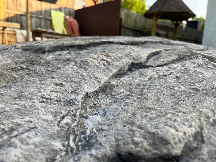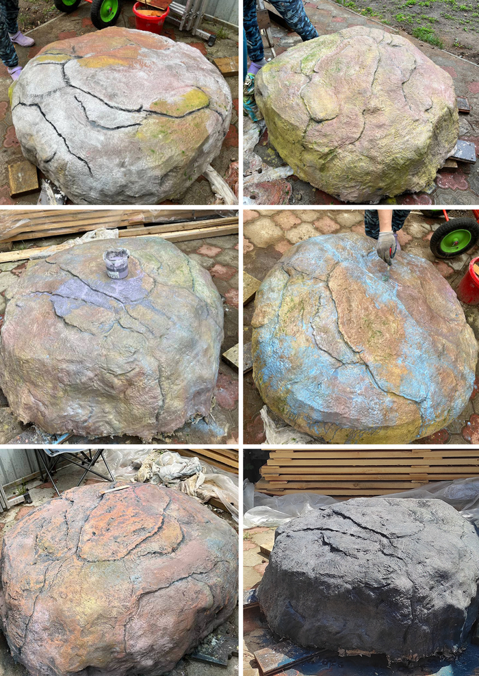 Когда валун слегка подсох я обычным ножом прорезал в нем трещины и сколы. И посыпал сверху остатками пигмента, просто потому что могу.