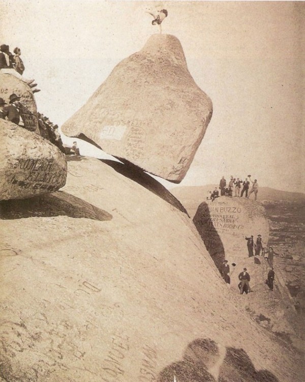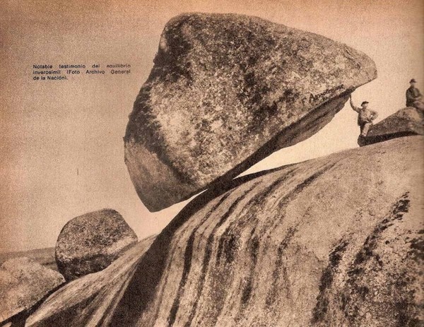 Этот камень представляет собой один из так называемых «качающихся камней» или «логанов», разбрасанных по всему миру, — огромный 300-тонный каменный монолит, балансирующий относительно единственной точки опоры на самом краю скалы.