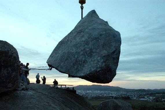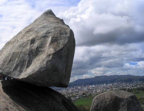 Это — огромный валун, весом более 300 тонн, повисший на самом краю скалы, мерно покачивающийся от порывов ветра, и вот уже несколько тысячелетий словно прикован неземной силой, кажущейся невозможной для человеческого понимания. Забредшие сюда туристы, утром, как только просыпались, с неверием тут же выбегали на улицу, чтобы проверить на месте ли валун?