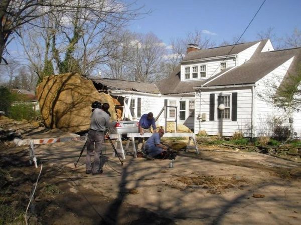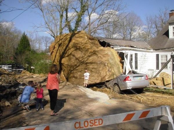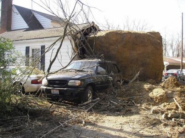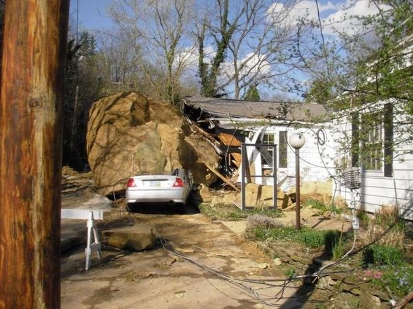 В американском городе Атенс, штат Огайо, совавшийся со склона валун, покатился на жилой дом и едва его не разрушил. Камень остановили припаркованные у дома машины и одна из пристроек, жильцы при этом не пострадали.