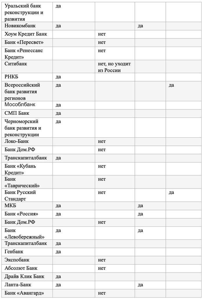 Список банков, которых отрезали от SWIFT: