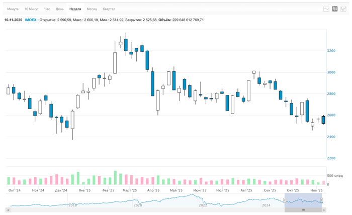 После двухнедельного отскока акции решили снова пробить дно. Итоговое изменение IMOEX с 2 566 до 2 514. Говорят, что внешняя фондовая конъюнктура ухудшилась. Драйверов для роста нет.