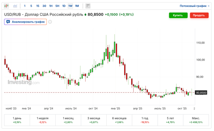 Вопреки прогнозам! Изменение за неделю: 80,95 → 80,85 ₽ за доллар (курс ЦБ 81,22 → 81,12). Юань 11,31 → 11,37 (ЦБ 11,35 → 11,40). ЦБ уменьшает продажи валюты, но никто почему-то не может сказать, когда уже будет курс ₽150 за доллар, как говорили ранее.