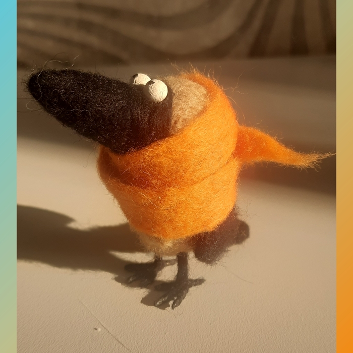 шерсть овечья, клювик из полимерной глины с росписью и лаковым покрытием, лапки на проволочном каркасе.
