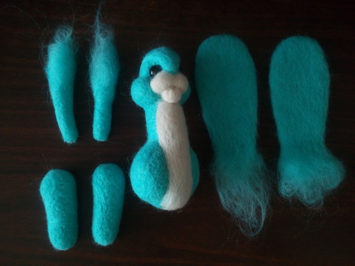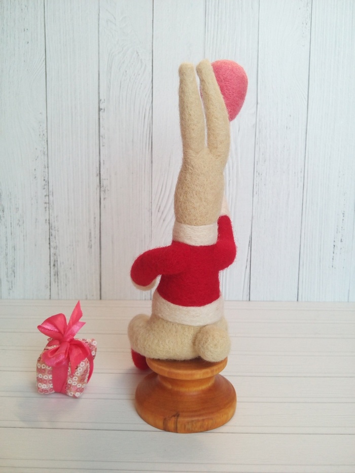Подставка - спил дерева, с двумя булавками-гвоздиками, чтобы малышка уверенно стояла, при желании её можно снимать с подставки чтобы потискать :)