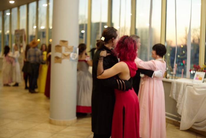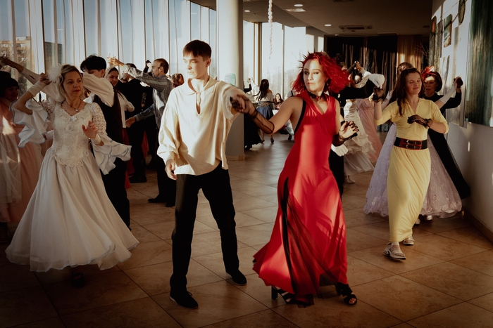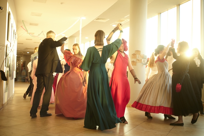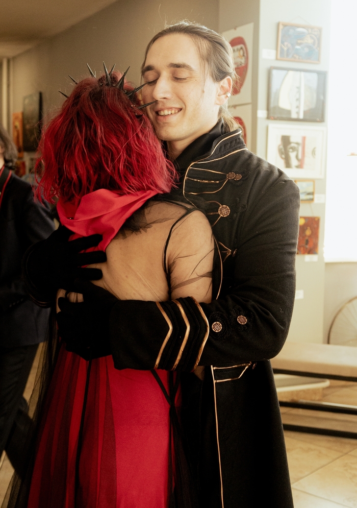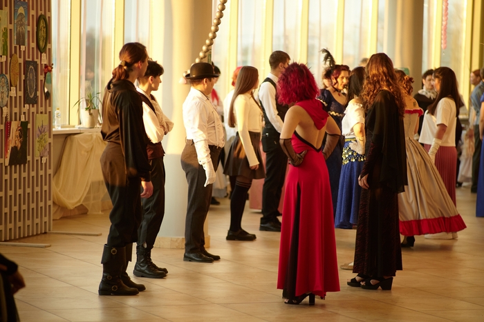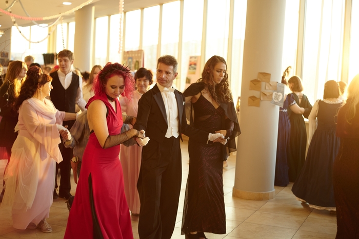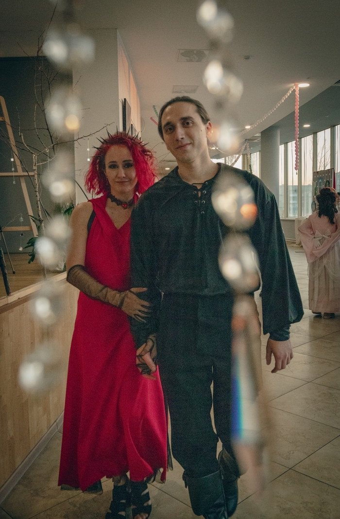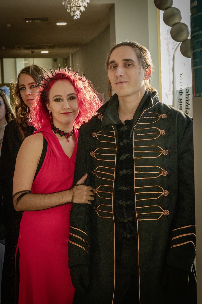 Бал был посвящен Грибоедову и назывался "Герой твоего романа", соответственно можно было выбрать любого книжного персонажа и собрать по нему костюм. Муж решил косплеить Дракулу, поэтому я взяла себе образ высшей вампирши Итании из цикла "Ремесло" Алекса Коша.