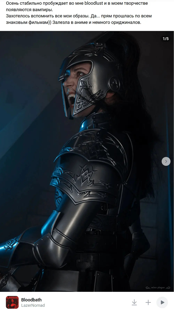 Мой трек "Bloodbath", изначально вдохновленный кровавой сценой из фильма "Blade", засветился в вампирском косплее за авторством Марии Шпренгер. С радостью такое поддерживаю и распространяю.