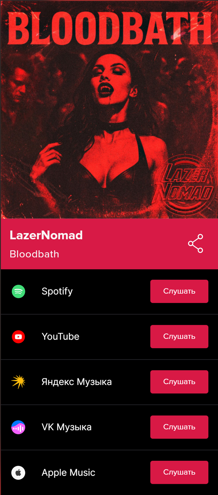 Ознакомиться с вампирско-танцевальным треком "LazerNomad - Bloodbath" можно на всех площадках.